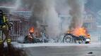 I baggrunden kan man se, hvordan flere biler allerede er stukket i brand.